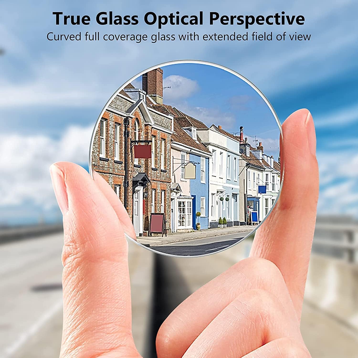 DESIGN - The mirror is convex, no metal in the whole body, which can be waterproof and rustproof. Double sided adhesive on the back to attach to the mirror of the car mirror ENHANCED SAFETY - This mirror is a blind spot mirror that allows you to see into the blind spot behind you when you stop and turn 360 DEGREE ADJUSTMENT - Wide angle mirrors come with an adjustable swivel mounting housings that rotates and swings 360 degrees to maximize your field of view HD REAL GLASS LENS - curved design with ABS housing , equipped with 3M adhesive for pressure-sensitive tape installation. IP67 waterproof, rust resistant and the glass will not haze, suitable for interior or exterior use. EASY TO INSTALL - Please clean your original car side mirror, then stick the blind spot mirrors on side rear view mirrors. Press down HARD when the mirror is stick to the side mirror, it is more firmly stick and will not fall off.